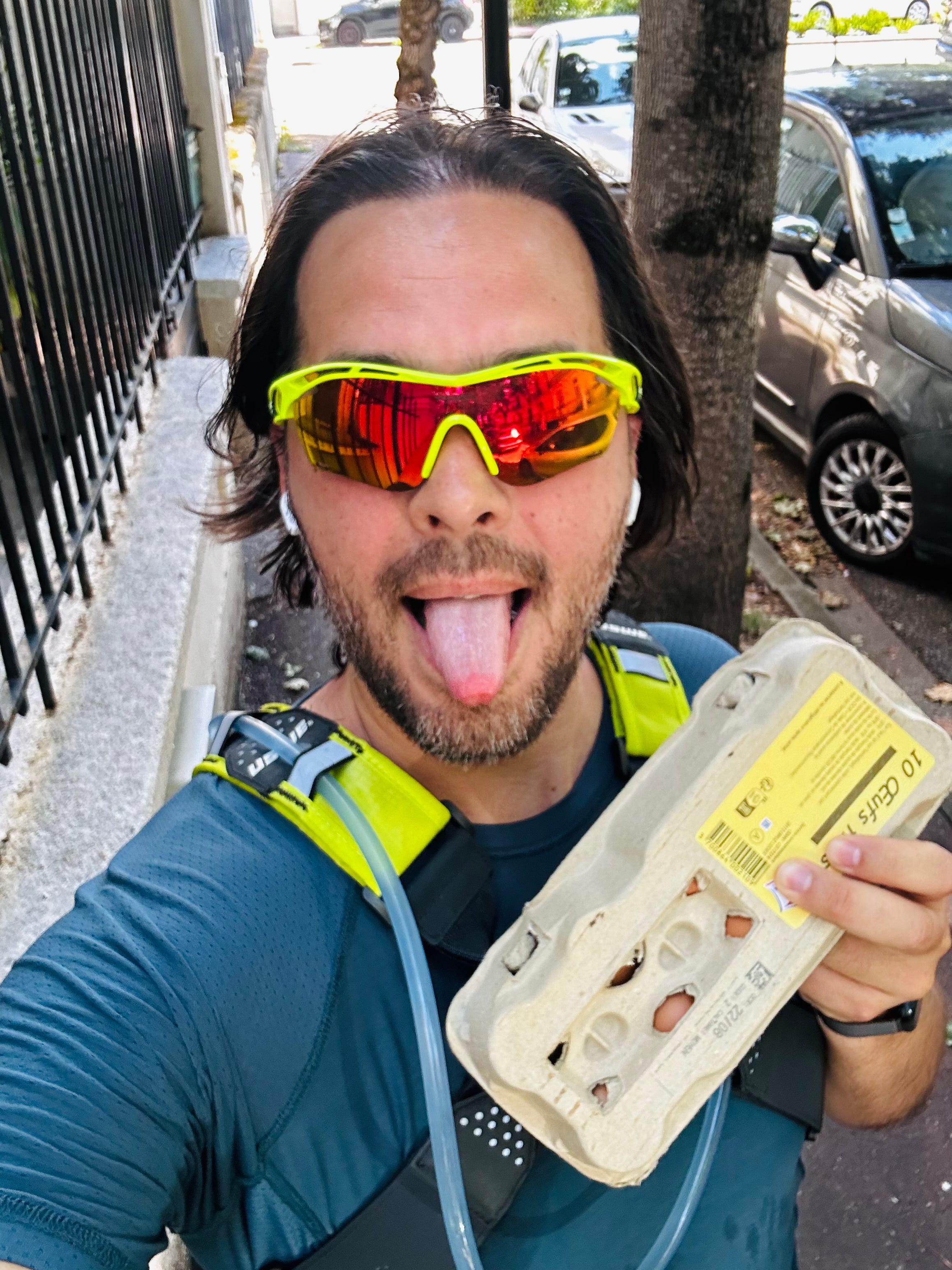 Oui, je sais, ce run mythique et le repos = ça fait 2. Ce n’était pas prévu, mais mon ami Frederic, qui s’occupe de la presse de l’assureur Allianz, m’a proposé un dossard. Je me suis dit “ce format de course n’est pas mon préféré. Y’en aura qu’un dans ma vie, ce sera celui des J.O 2024, avec l’ambiance de fou sur les bords de route”. Oups, prépa contrariée par une blessure aux tendons il y a 2 mois. 6 semaines de rééducation. J’ai fait comme j’ai pu, dans le respect du corps. Entrainements et alimentation adaptés (maintien des protéines, + de légumes et d’antioxydants, 0 alcool), respirations, visualisations, quelques bains froids et… je me sens prêt à parcourir ces 10 fois 4 bornes (hi hi, plus facile quand on le cisèle comme une ciboulette…).