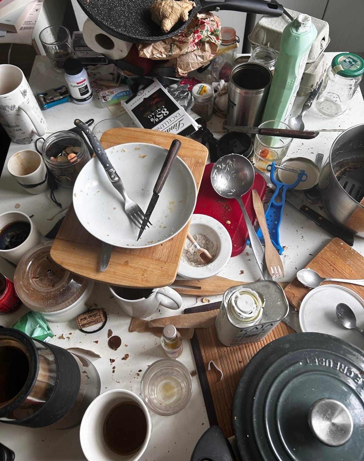 une procrastination accrue des tâches les plus basiques : vaisselle, ménage, pliage de vêtements = tout s’accumule et devient montagne, au propre comme au figuré;